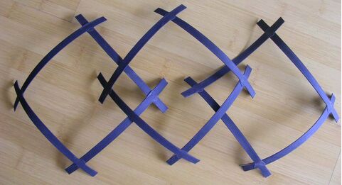 鋼塑格柵是一種主要的土工合成材料。以高*鋼絲(或其他纖維),經特殊處理,與聚乙烯(PE)或聚丙烯(PP),并添加其他助劑,通過擠出使之成為復合型高*抗拉條帶,且表面有粗糙壓紋,則為高*加筋土工帶。由此單帶,經縱、橫按一定間距編制或夾合排列,采用特殊*化粘接的熔焊*(*聲波焊接*)焊接其交接點而成型,則為加筋格柵。
