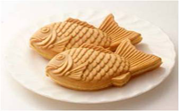 注入橢圓型鐵制或銅制的模具中,然后放入內餡(多為小豆餡),