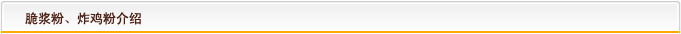 我公司的產(chǎn)品種類豐富多樣,有脆漿粉、炸雞粉、打底粉、裹漿粉、天婦羅粉、唐揚(yáng)粉、熱狗粉、龍?zhí)飺P(yáng)粉等其中脆漿粉和炸雞粉是用于炸制雞肉類素材的常規(guī)產(chǎn)品。