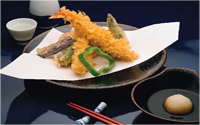 可將牛蒡、香菇、茄子、金針菇等裹制天婦羅漿油炸。